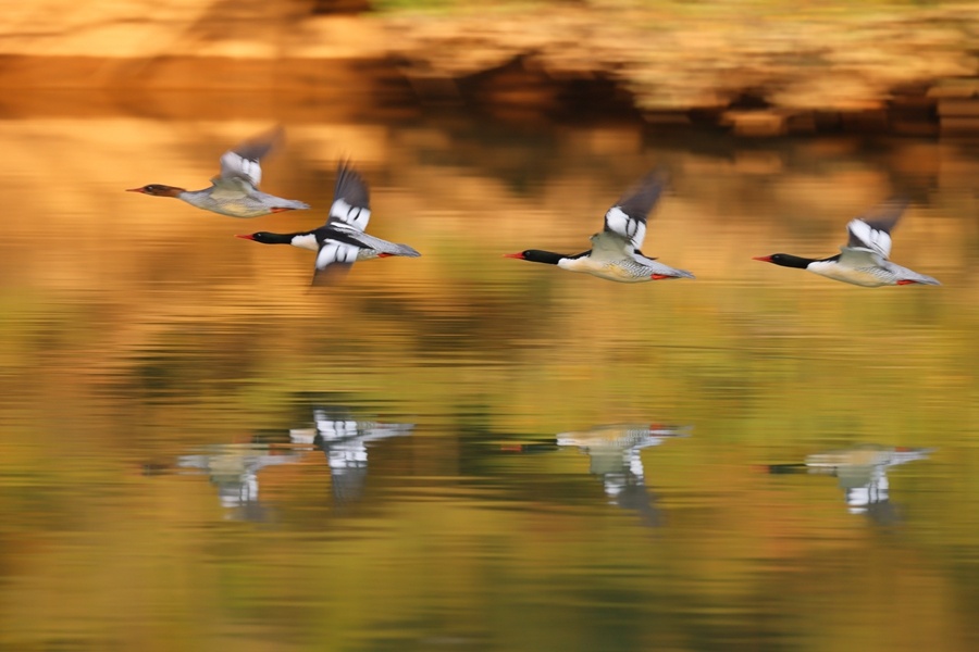 中华秋沙鸭是我国独有的珍稀鸟类,被誉为“鸟中大熊猫”,属于国家一级重点保护野生动物。鸟类专家认定,中华秋沙鸭全球现存活不到3000只,被列入世界自然保护联盟(IUCN)濒危物种红色名录。